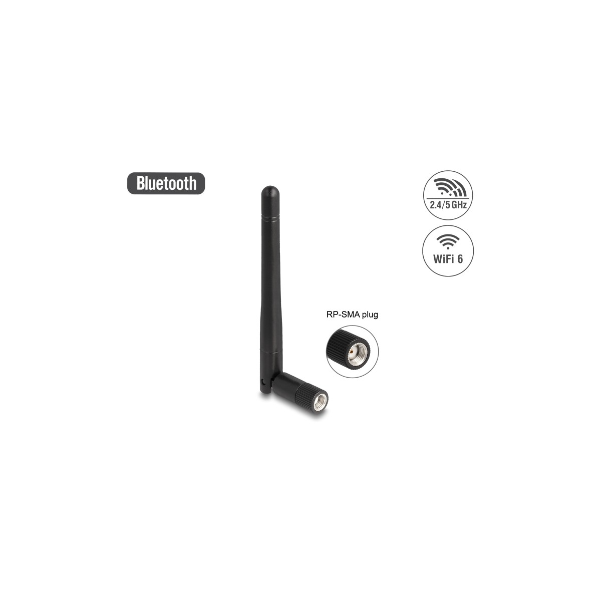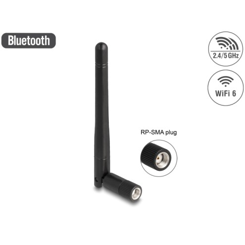 Delock WLAN 802.11 ac/ax/a/b/g/n Antenna RP-SMA plug 2 dBi omnidirectional with tilt joint black