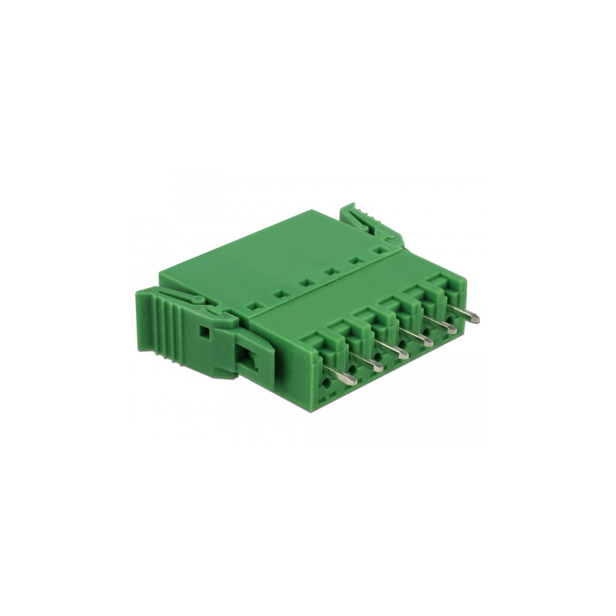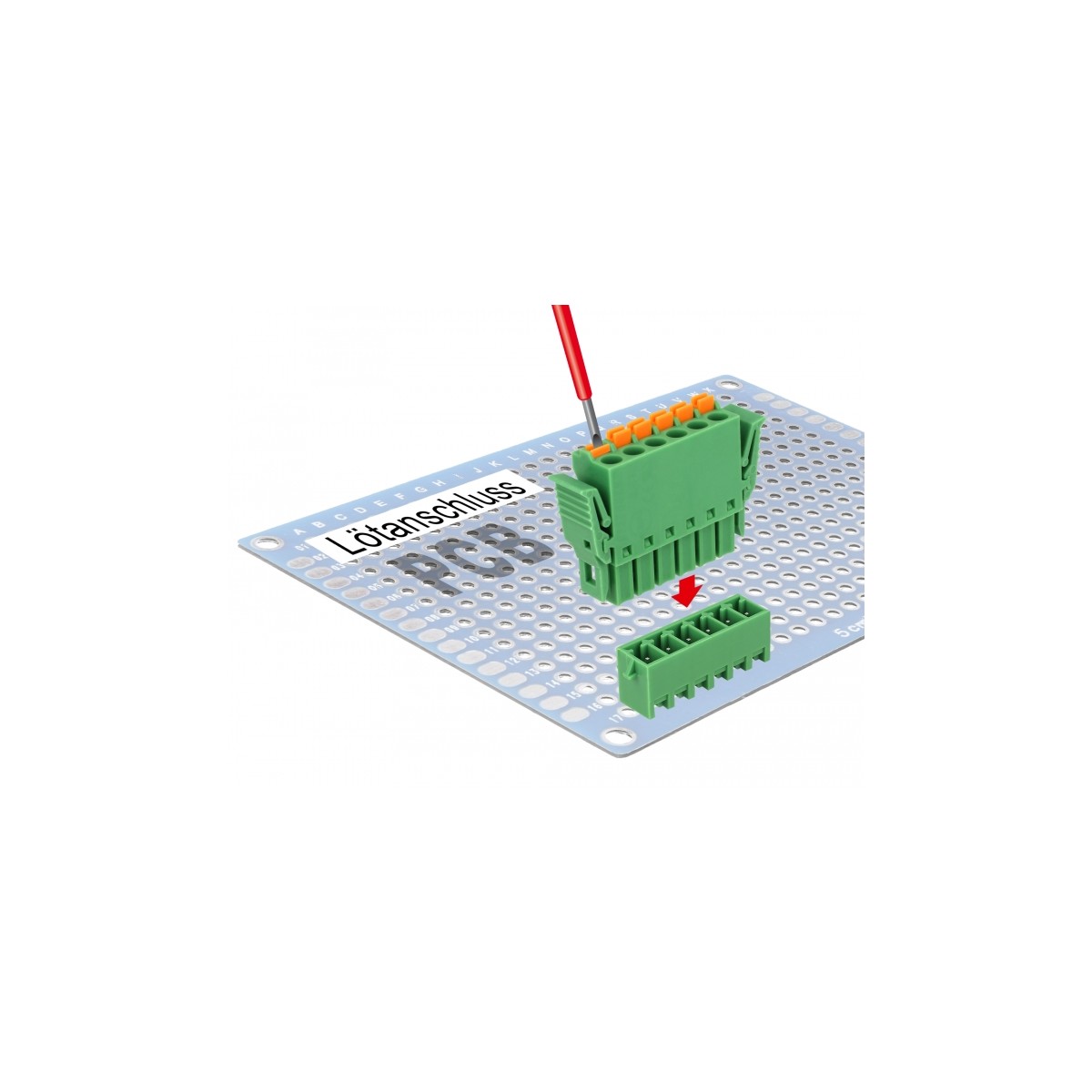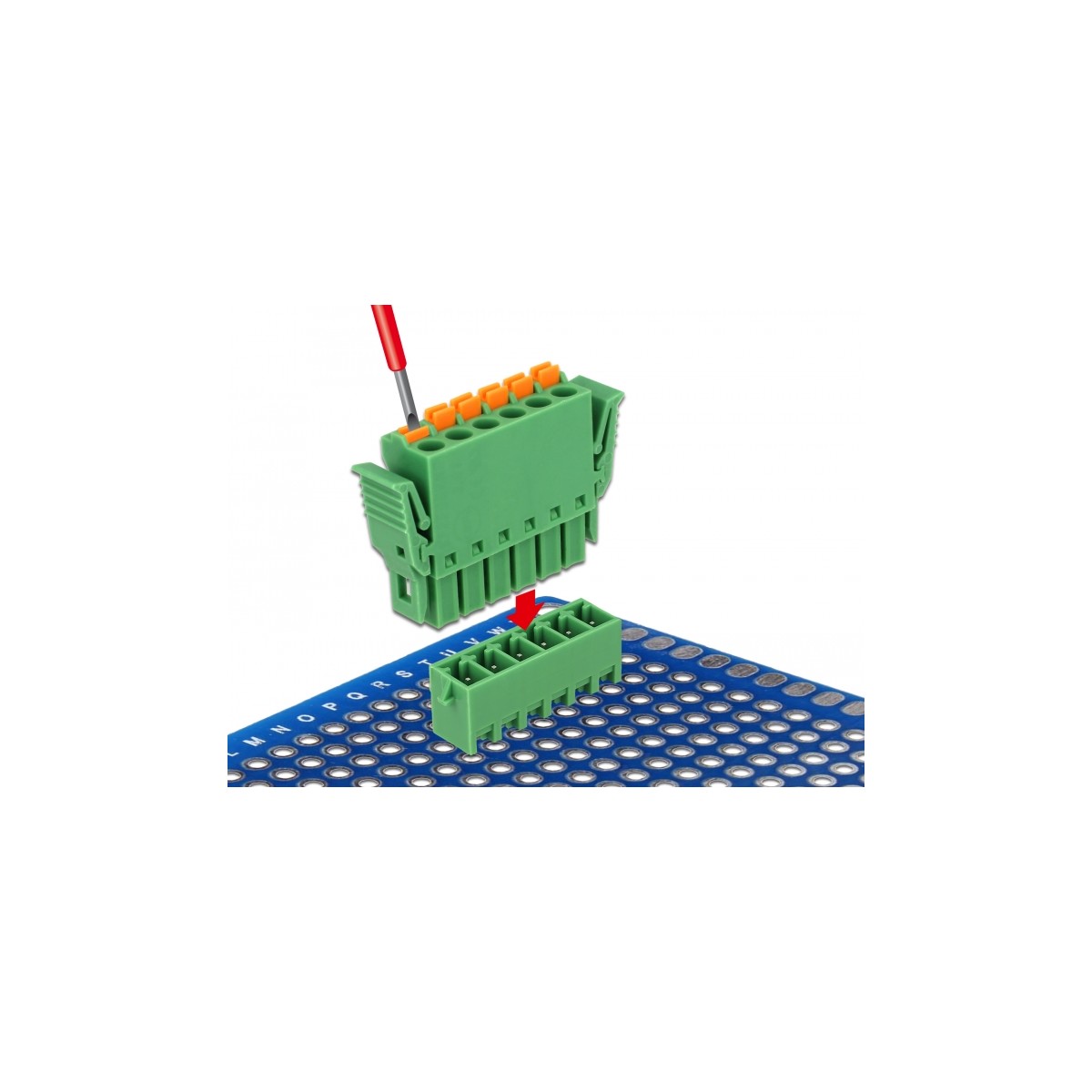 This terminal block set by Delock will be soldered on a PCB, to create a detachable connection between two components.