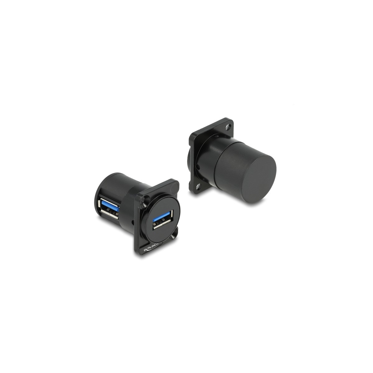This module by Delock can be used e.g. for installation in a panel or housing with D-Type opening and can be used to connect USB devices.