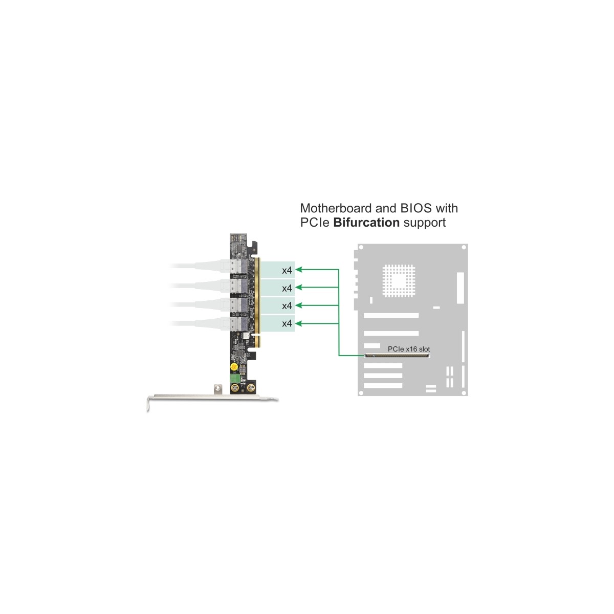 Delock PCI Express x16 Card to 4 x internal SFF-8654 4i NVMe - Bifurcation