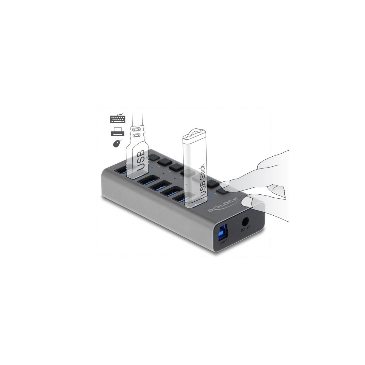 Delock External USB 5 Gbps Hub with 7 Ports + Switch