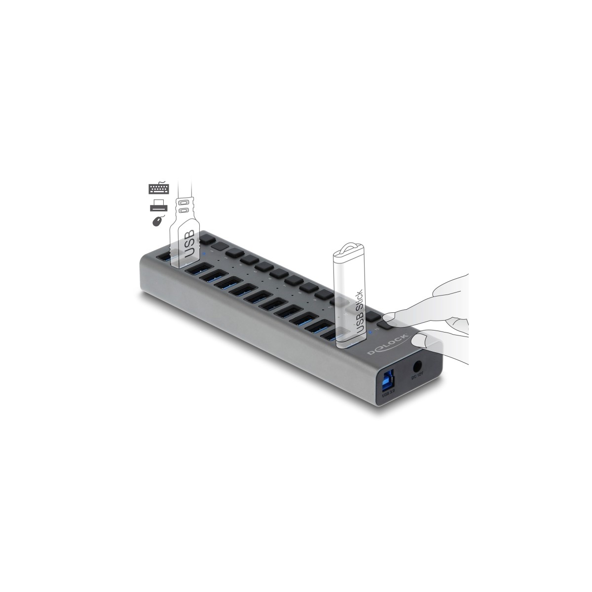 Delock External USB 5 Gbps Hub with 13 Ports + Switch