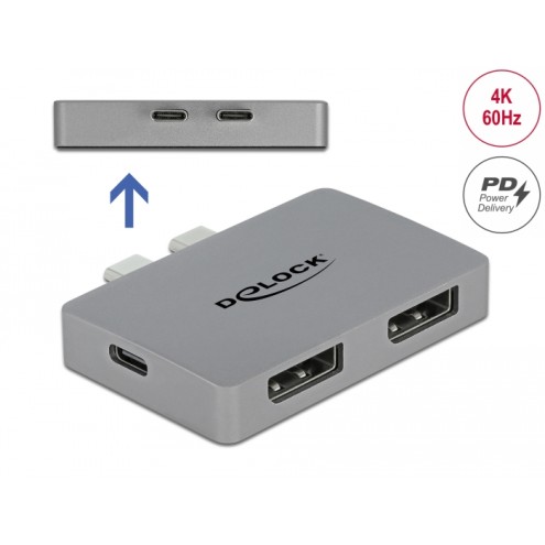 Delock Dual DisplayPort Adapter with 4K 60 Hz and PD 3.0 for MacBook