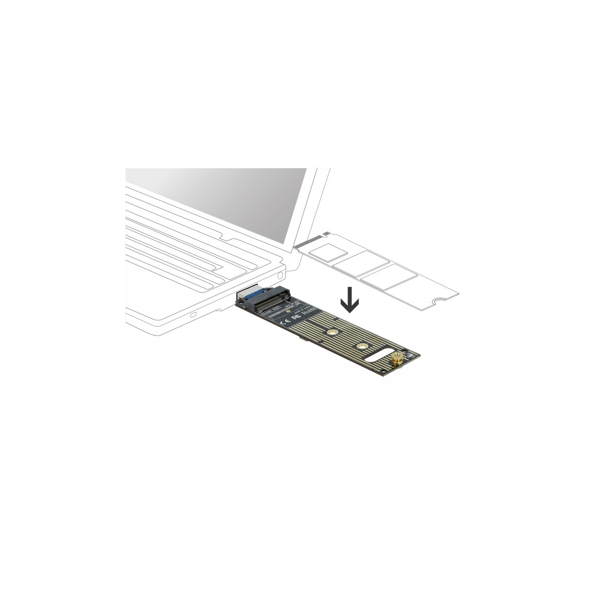 Due to the USB-A connector and the direct installation of the SSD on the board, without enclosure, the Delock converter is most suitable as test equipment.