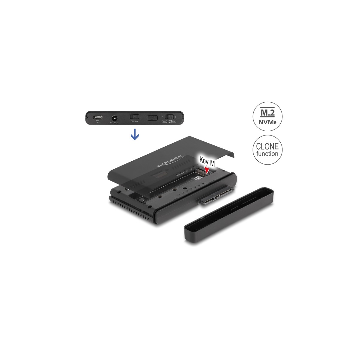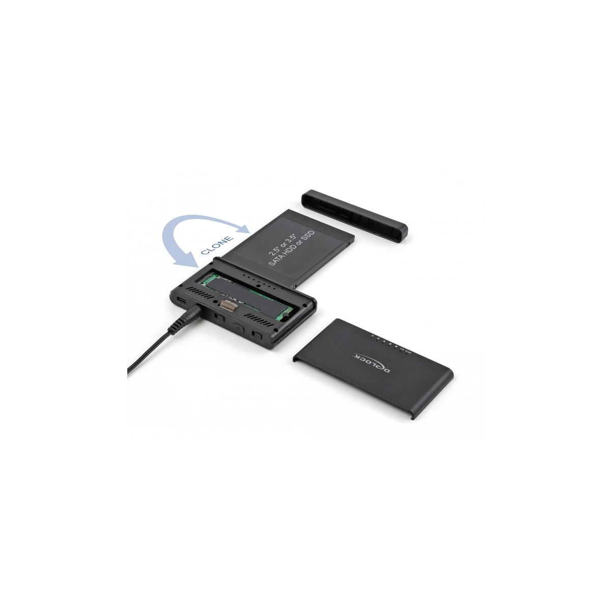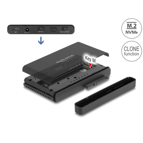 Delock USB Type-C™ Converter for 1 x M.2 NVMe SSD + 1 x SATA SSD / HDD with Clone Function