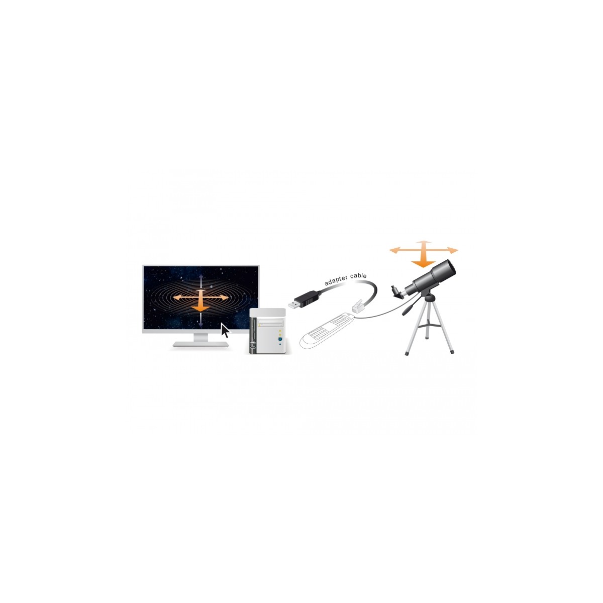 This USB to RS-232 RJ12 adapter cable by Delock is suitable for the PC operation of hand control boxes by the Skywatcher Telescopes. With the appropriate astronomy applications, the position of the telescope can be controlled by the computer or a firmware update can be carried out.