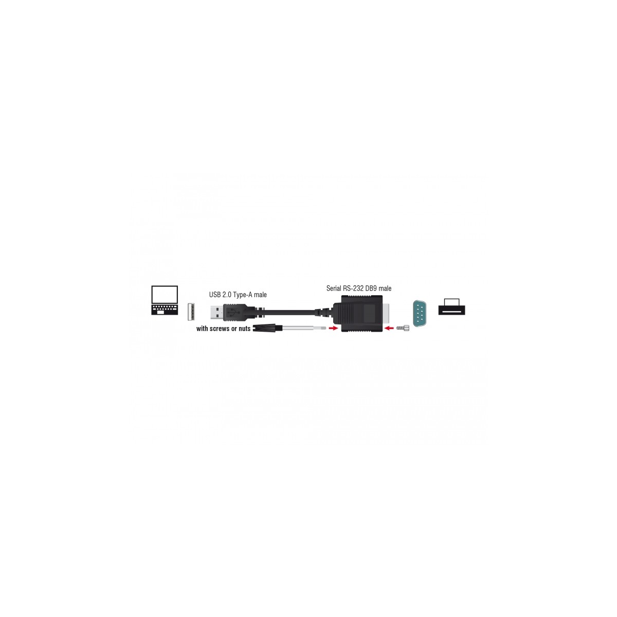 Delock Adapter USB 2.0 Type-A male to 1 x Serial RS-232 D-Sub 9 male with screws and nuts ESD protection