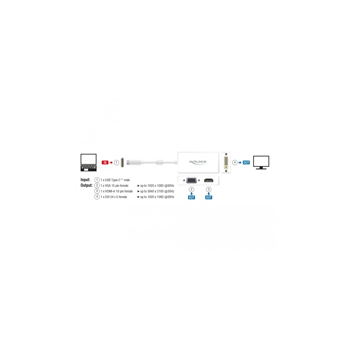 Delock Adapter USB Type-C™ male VGA / HDMI / DVI female white