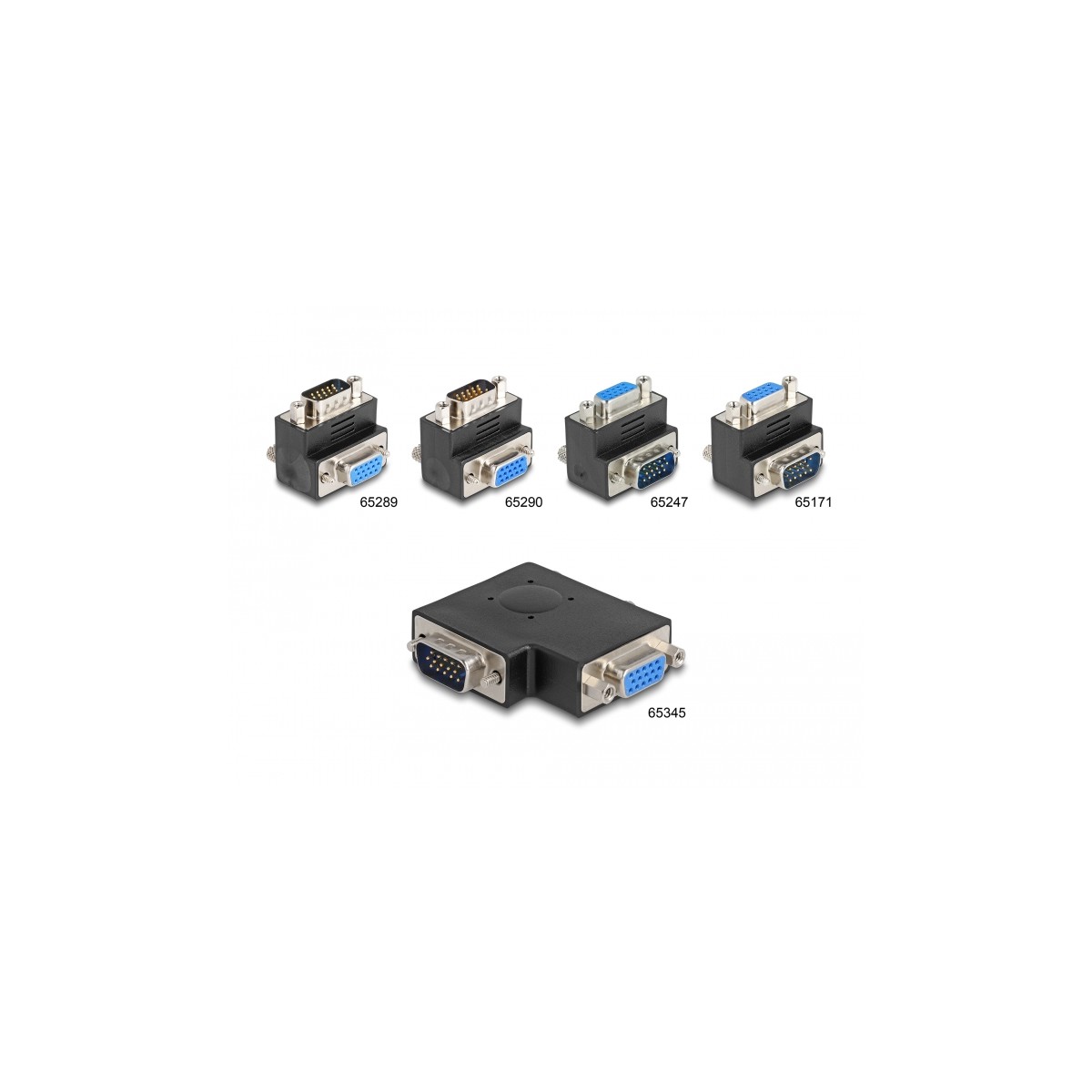 This adapter by Delock enables to angle the VGA interface of your device or cable. Thus VGA device can be connected without any problem in case the existing VGA port is difficult to access.