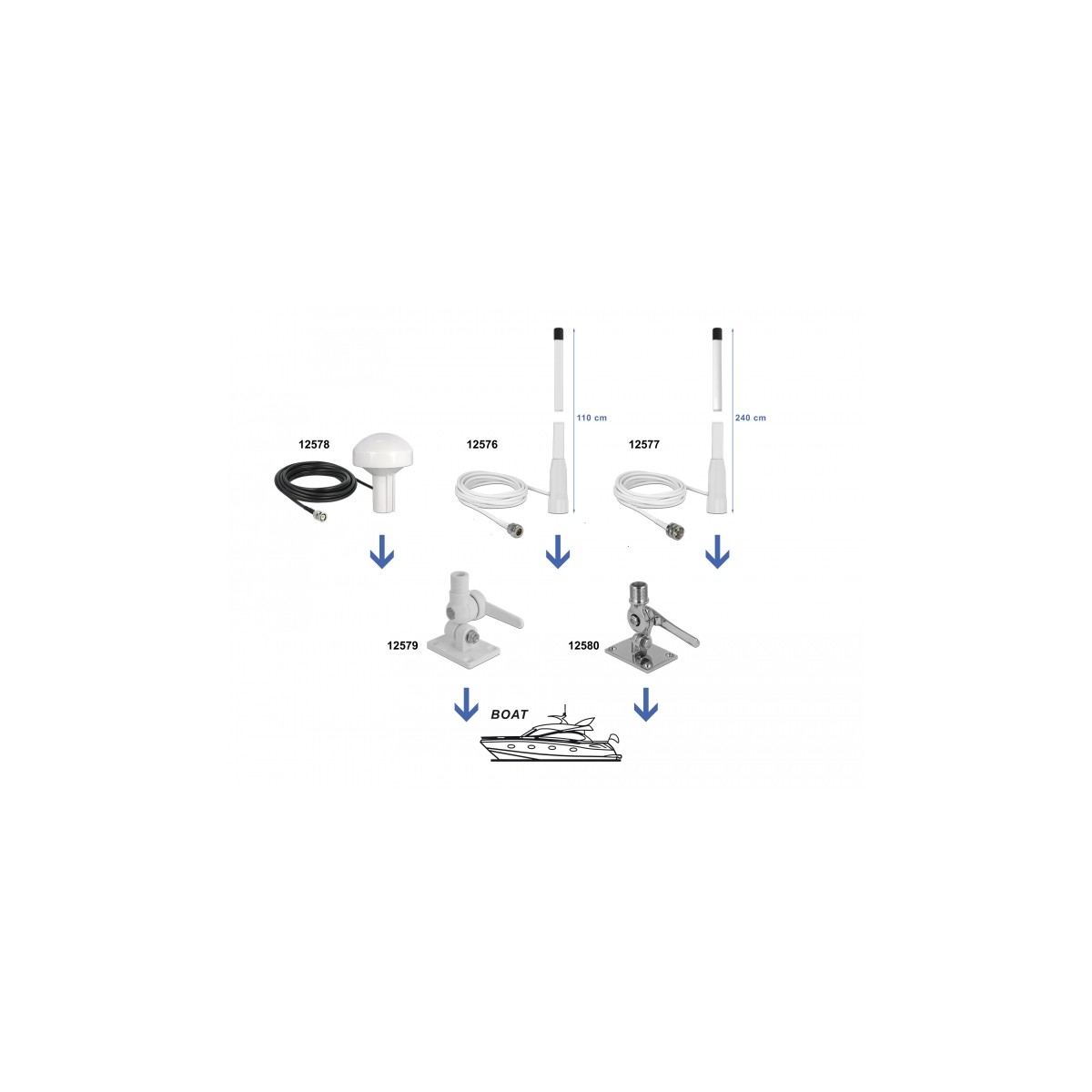 This antenna base by Delock is especially designed for various marine radio antennas. The foot is suitable for screw fastening.