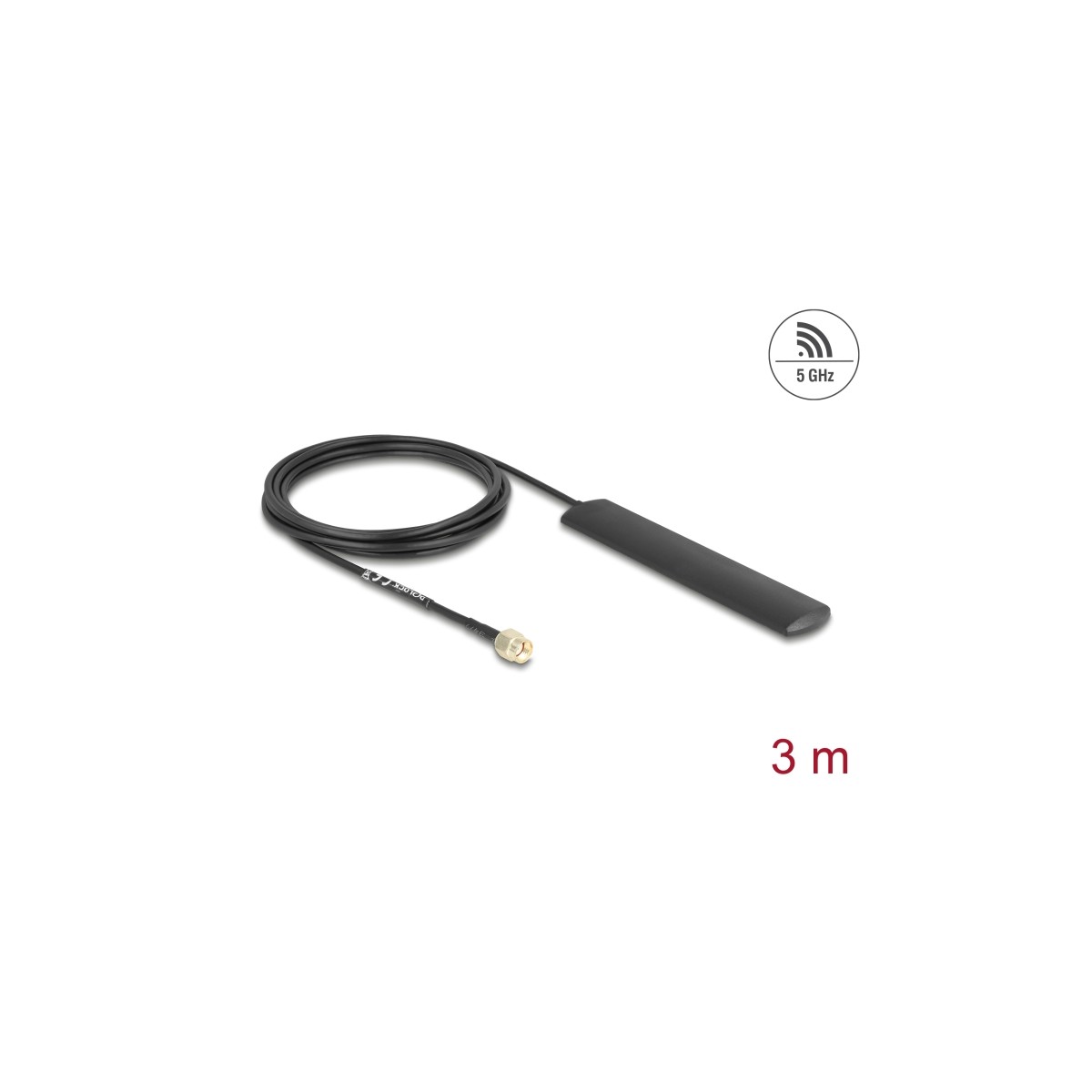 Delock WiFi 5.8 GHz Antenna RP-SMA plug 3 dBi omnidirectional with connection cable RG-174 3 m black self-adhesive