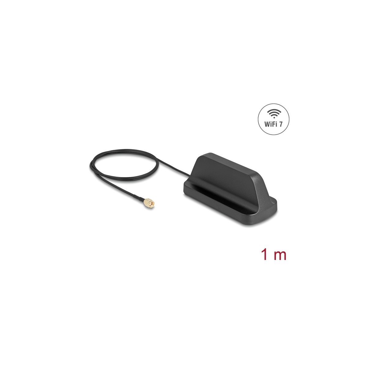 Delock WiFi 7 Antenna RP-SMA plug 2.5 - 3.6 dBi omnidirectional with magnetic base and connection cable ULA100 1 m outdoor black